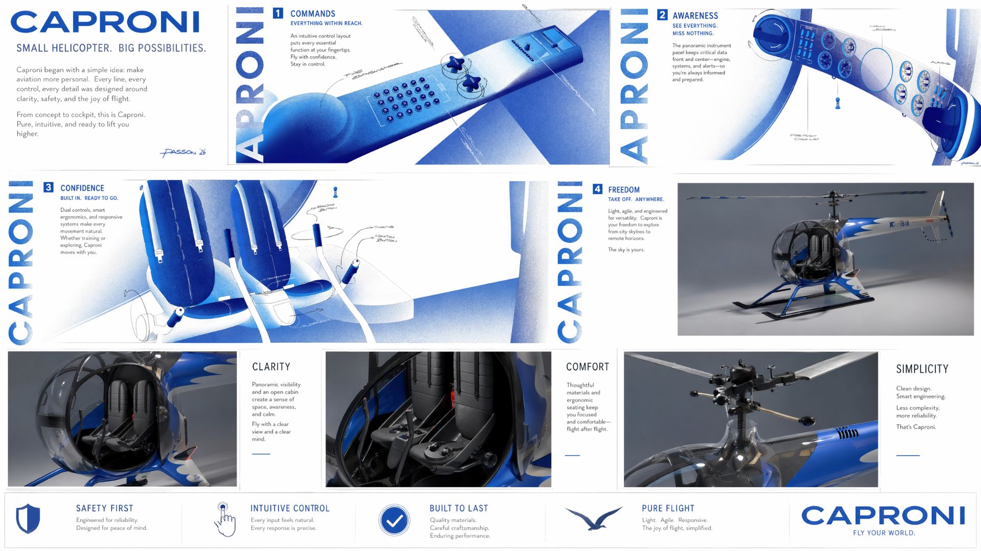 The Caproni Vortice is a confident piece of design thinking. Its geometry is clear, its surfaces are disciplined, and its relationship with engineering is well considered. But it also exposes the limits of its own philosophy. The front half feels designed with intent, but the rear feels resolved rather than explored. The canopy creates identity but the rest of the aircraft struggles to match it. The exterior challenges convention but the interior retreats into safety. The Vortice is not trying to deliver a final answer. It is testing a direction. One where aviation moves away from visual complexity and toward something more refined, more controlled, and more approachable.
